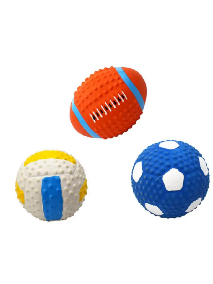 Interactive Natural Latex Rubber Pet Chew Sound Squeaky Toothbrush rugby dog ball toys
