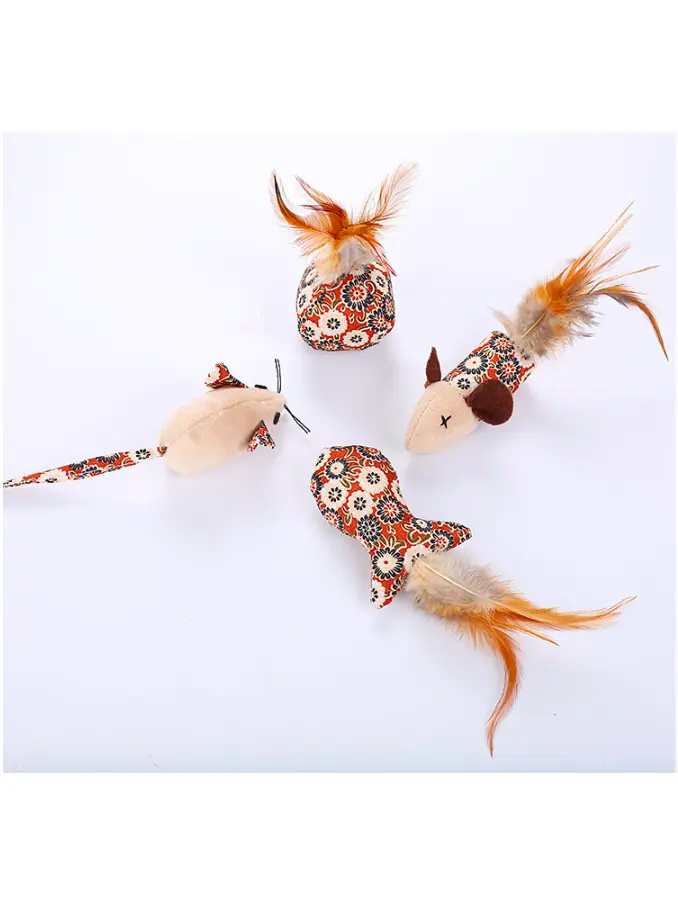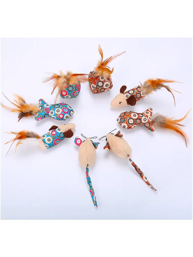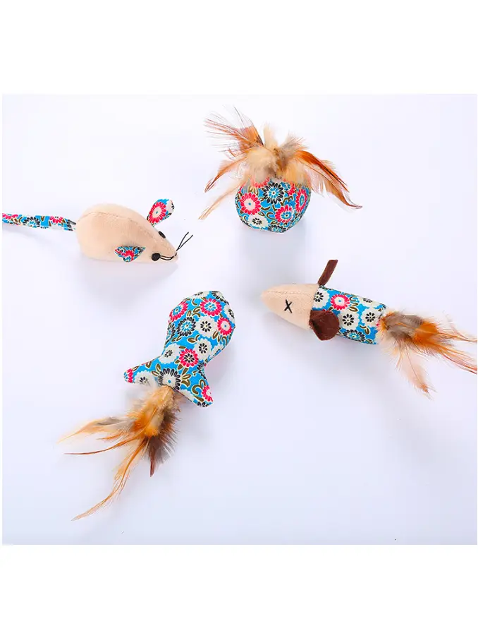 Portable lovely Cat Toys Mouse Fish Ball Feather Toy With Mint Funny Cat Teaser Interactive Pet Catnip Toy