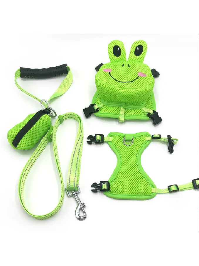 Pet Harness Backpack Adjustable Saddle Bag with D-Ring for cats and small dogs & pet dog collar and leash harness set