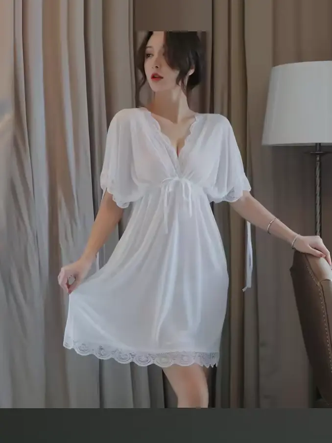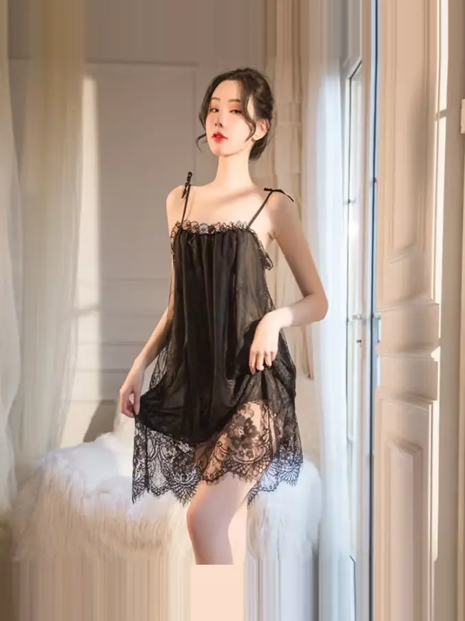Indulge in allure and comfort with our Sexy Lace Suspender Nightdress. Crafted from breathable polyester material, this knee-length nightgown features a round neck and sleeveless design. The plain dyed lace fabric adds elegance, while the thin construction ensures a lightweight feel. Available in four captivating colors (S-M-L-XL-XXL), this Women Sexy Sleepwear Pajama ensemble is perfect for lounging, homewear, and bedtime. Slip into sophistication!
