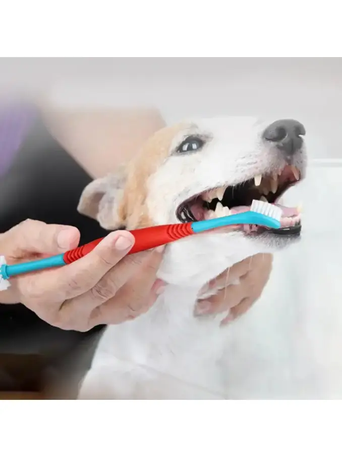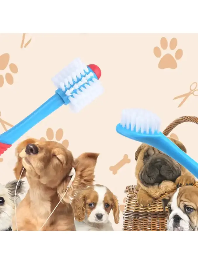 Our Double Heads Pet Toothbrush Dog Toothbrush – the perfect tool to maintain your furry friend's dental hygiene effortlessly. Designed with dual brush heads, this toothbrush allows you to clean both sides of your pet's teeth simultaneously, cutting brushing time in half while maximizing effectiveness.