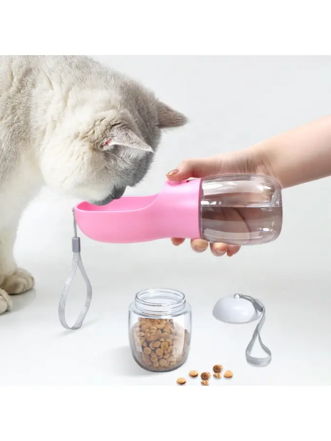 Our Traveling 2-in-1 Pet Water Food Container is the ultimate companion for outings, hikes, road trips, or simply walks in the park. This innovative solution combines a portable water bottle and food dispenser into one convenient unit, ensuring your furry friend's needs are met wherever your journey takes you.