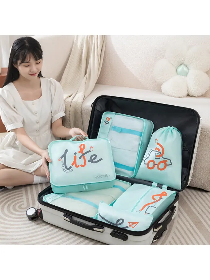 Packing Cubes for Travel Portable Luggage Organizer Bag 6 Pcs Set Foldable Suitcase Organizer Lightweight Luggage Storage Bag