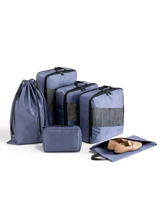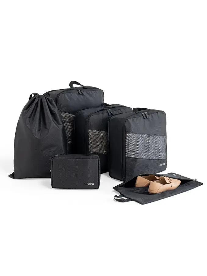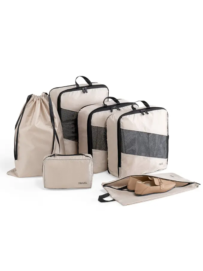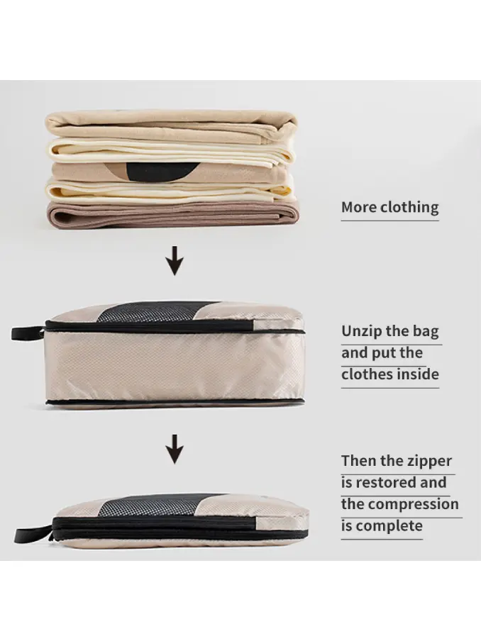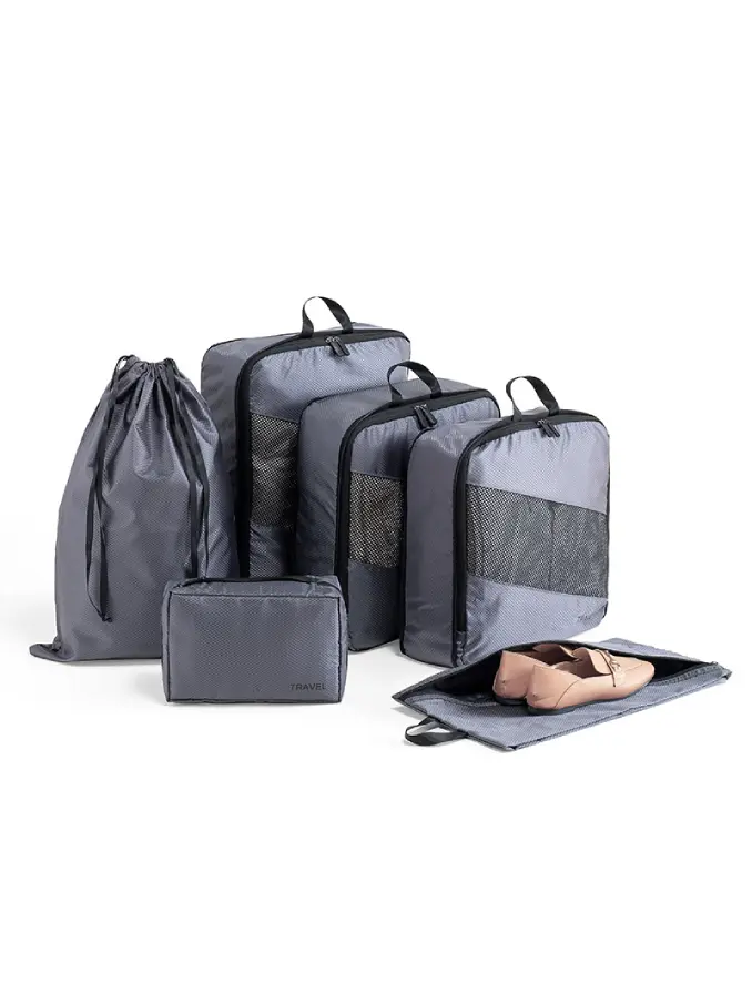 Prepare for stress-free travel with our Compression Packing Cubes set. This 6-piece travel storage bag set is designed to simplify packing, keep your belongings organized, and maximize luggage space, ensuring you can travel with ease and efficiency.