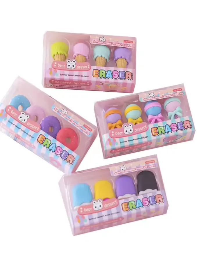Mixed Design 4 pcs per pack Ice Cream Summer Dessert Eraser Student Gift School Supply Funny Eraser For Kids Creative Stationery