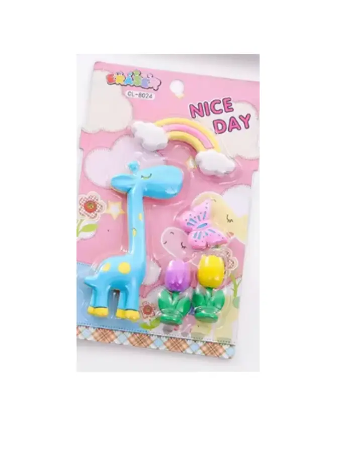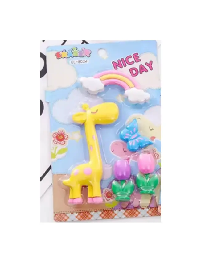 Introducing our delightful 5-piece pack of Cute Cartoon Giraffe Rainbow Flower Erasers! These big, kawaii-style erasers are perfect for kids who love colorful and fun stationery. Each eraser features charming designs of giraffes, rainbows, and flowers, making homework and drawing time extra enjoyable. Ideal for both school and play, they're a wonderful addition to any child's collection. Brighten up their day with these adorable erasers