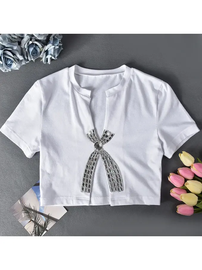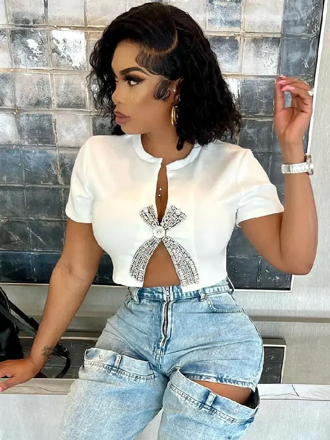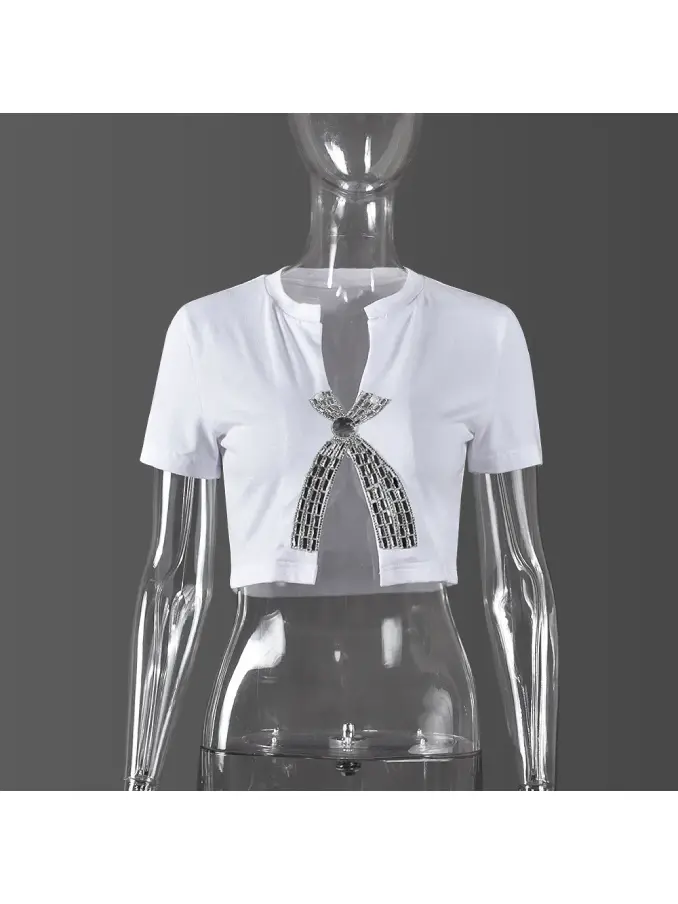 Transform your wardrobe with our tantalizing Split Hot Drilling Crop Top, designed to elevate your style quotient instantly. Perfect for those who love to make a statement, this crop top blends elegance with a touch of allure, making it an essential for your next night out or special occasion.