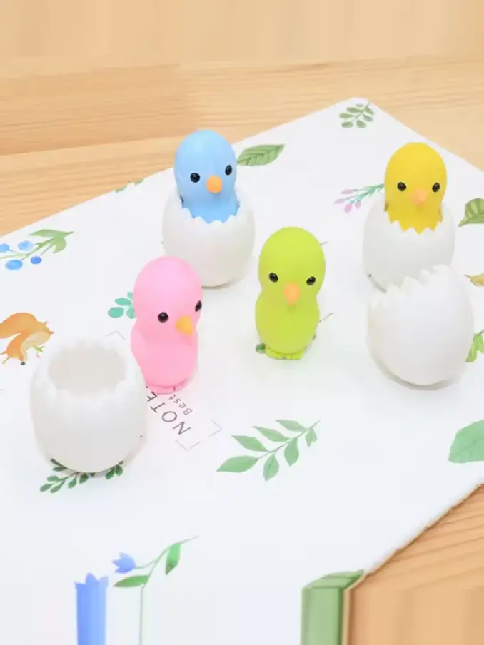 Add a touch of cuteness to your stationery with our Kawaii Eggshell Chick Pencil Eraser! This fancy animal eraser features an adorable chick hatching from an eggshell, making it a delightful addition to any pencil case. Perfect for kids and students, this eraser is not only fun but also highly functional. Ideal for school use, gifts, or party favors, it brings a playful charm to everyday tasks. Brighten up your desk with this cute and creative eraser!