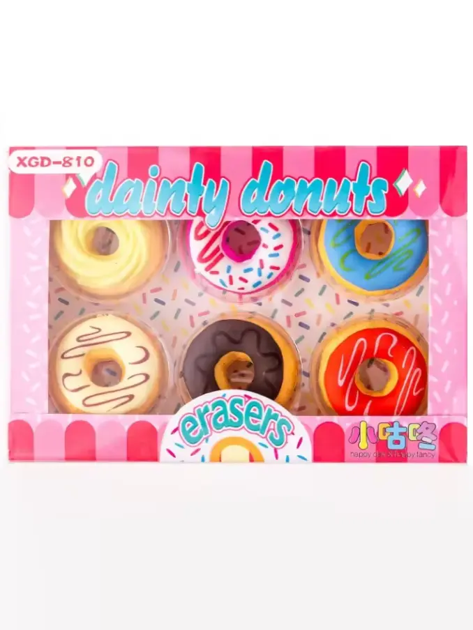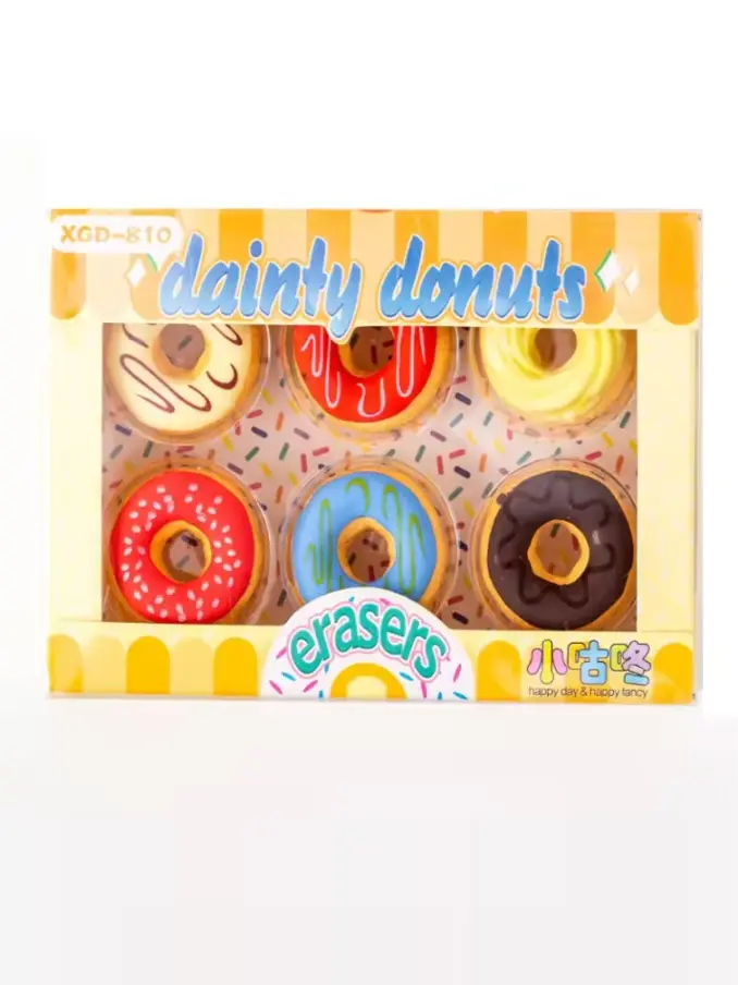 Sweeten up your stationery collection with our Candy Doughnut Erasers! This pack of six colorful and creative erasers is perfect for students and stationery enthusiasts. Shaped like delicious doughnuts, these erasers add a fun and whimsical touch to any pencil case. Ideal for school use, student gifts, or party favors, they are both functional and delightful. Wholesale options available for custom orders. Make learning enjoyable with these charming doughnut-shaped erasers!