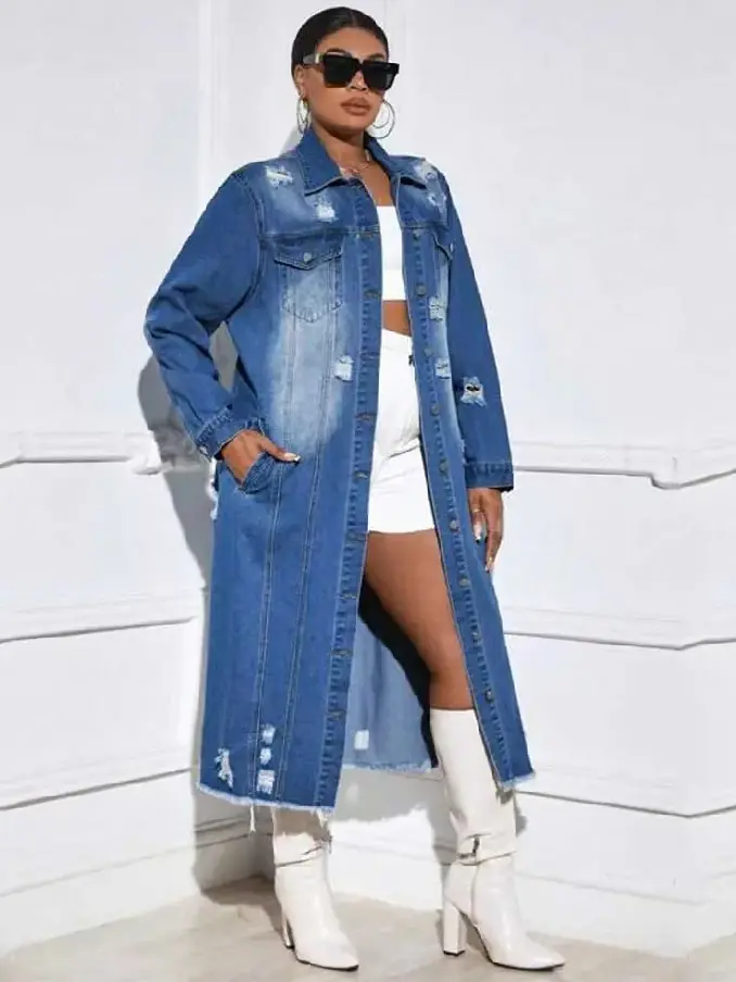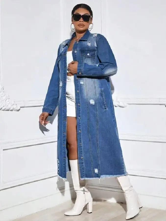 Revitalize your wardrobe with our Ripped Raw Cut Denim Coat, a bold and contemporary piece that combines edgy style with timeless denim comfort.