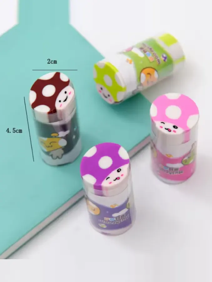 Brighten up your classroom with our Colorful Mushroom Style Kawaii Eraser Toys! These adorable round strip erasers are perfect for students and make excellent classroom prizes. With their cute and whimsical mushroom design, they add a fun touch to any stationery collection. Ideal for school use, student gifts, or party favors, these erasers are both functional and delightful. Encourage creativity and make learning enjoyable with these charming kawaii eraser toys!