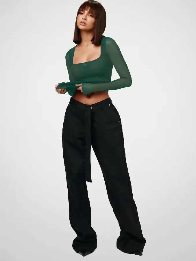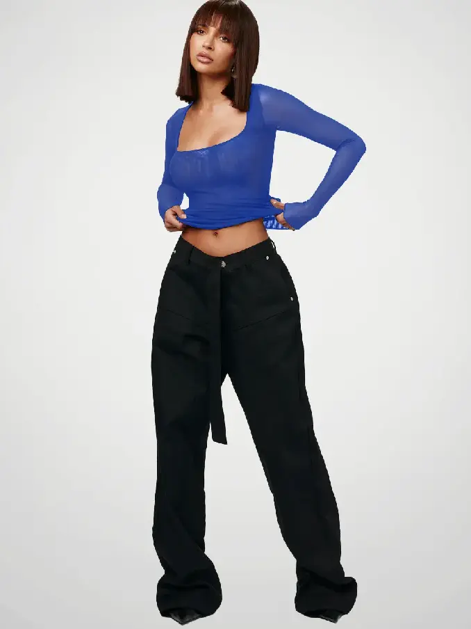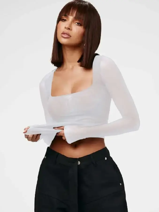 Mesh Square Neck Tops