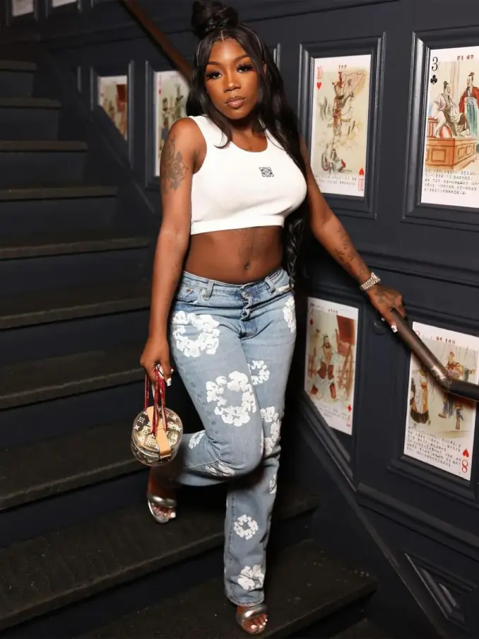 Add a touch of floral charm to your wardrobe with our Floral Print Straight Leg Jeans, where classic denim meets botanical beauty. These jeans are perfect for the fashion enthusiast who loves to blend elegance with everyday comfort.