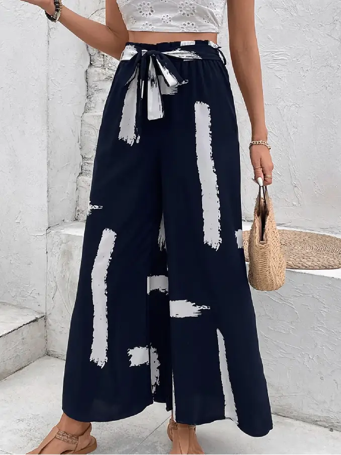 Discover effortless elegance with our Fashion Trousers Printed High Waist Wide Leg Pants. Designed for the trendsetter who values comfort and style, these pants are a versatile addition to any wardrobe.