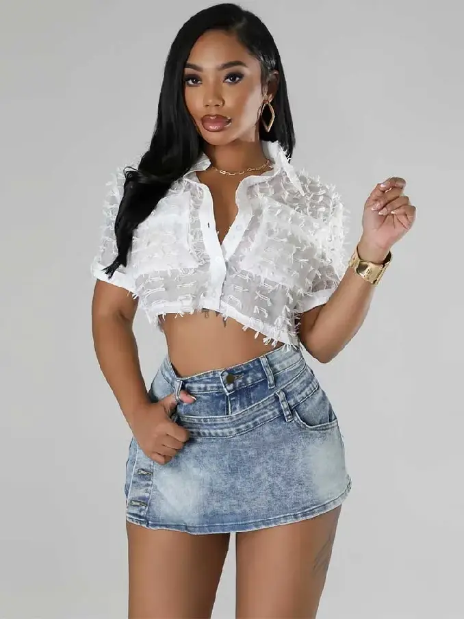 Discover the perfect blend of allure and practicality with our Stretch Women's Skirt Buttoned Multi-Pocket Denim Shorts, designed to redefine casual chic.