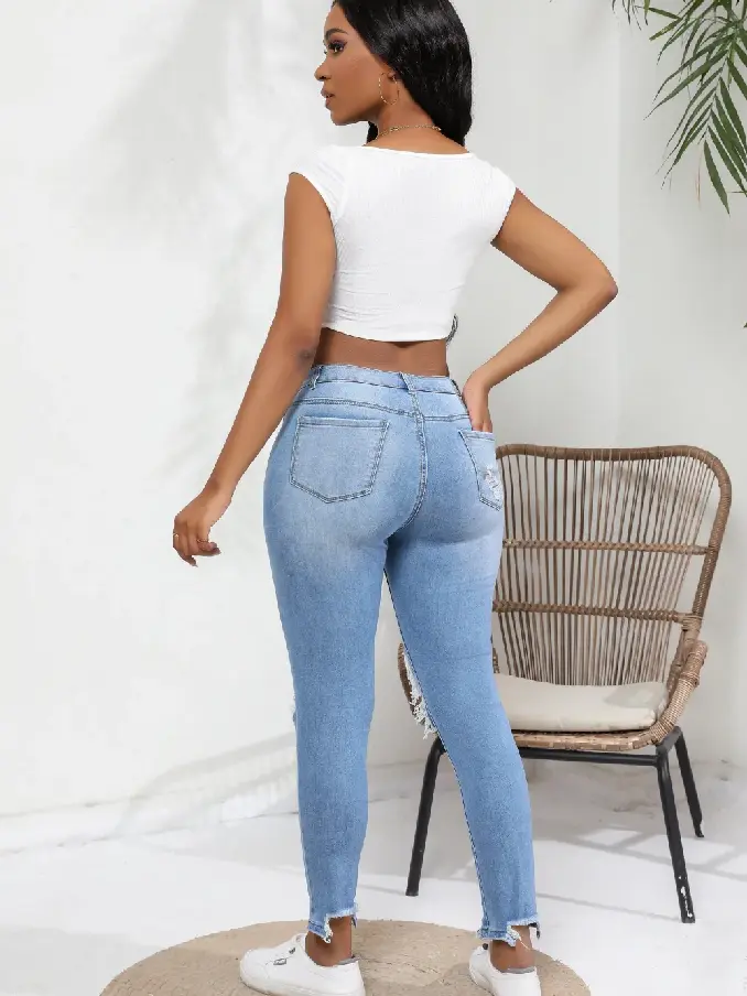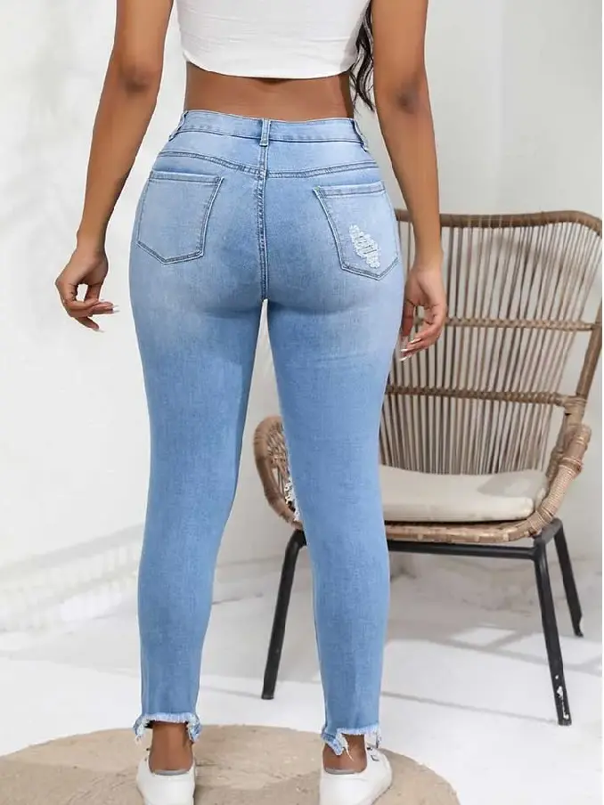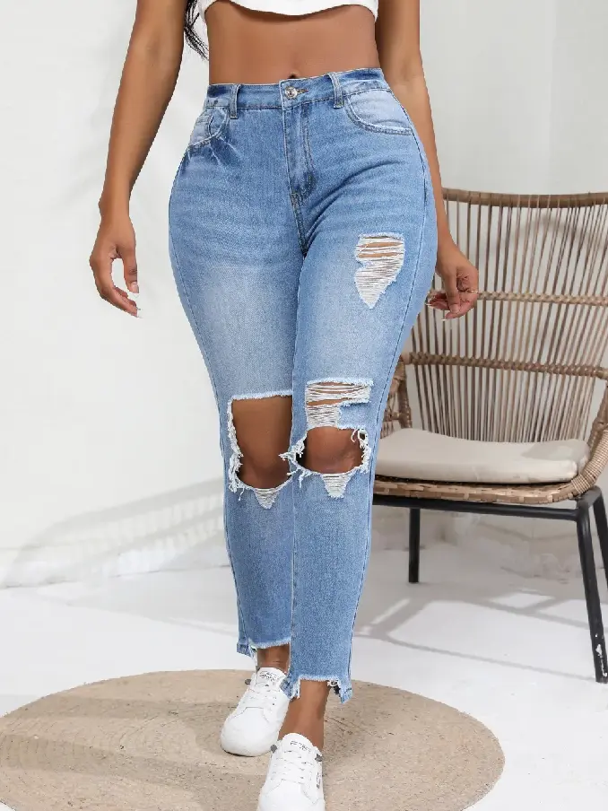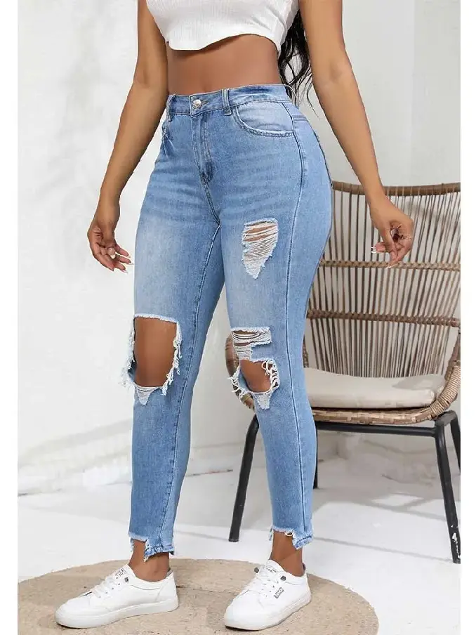 Revamp your wardrobe with our Women's Ripped Jeans Slim Stretch Distressed Destroyed Retro Denim Pants, a fusion of contemporary style and vintage charm.