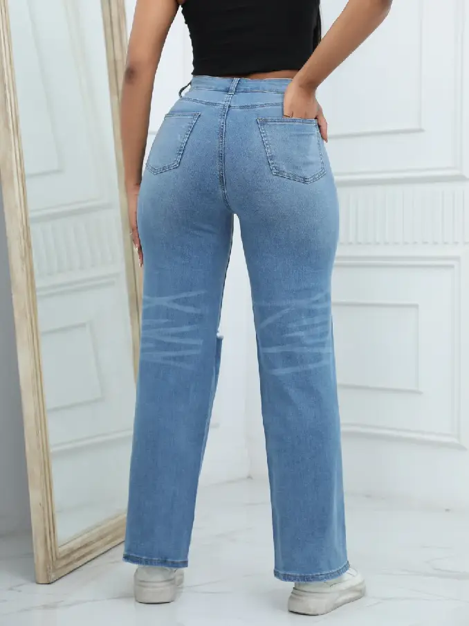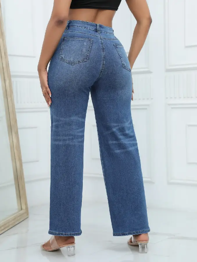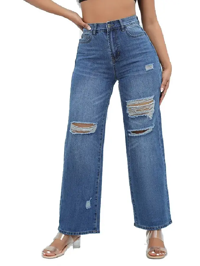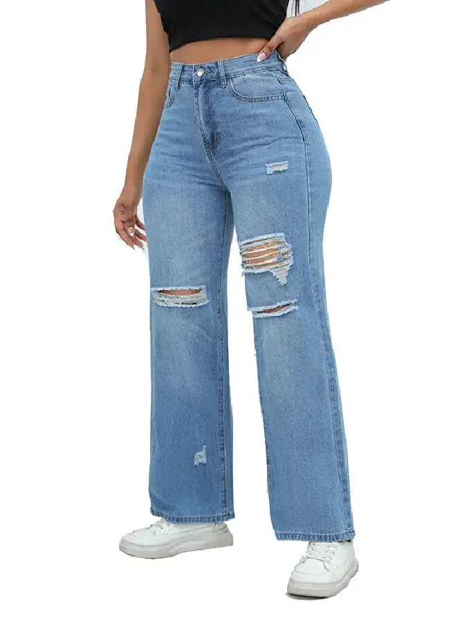 Women's Sexy Denim Trousers Street High-Rise Ripped Washed Jeans