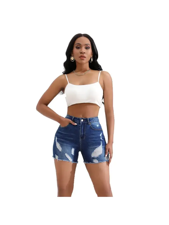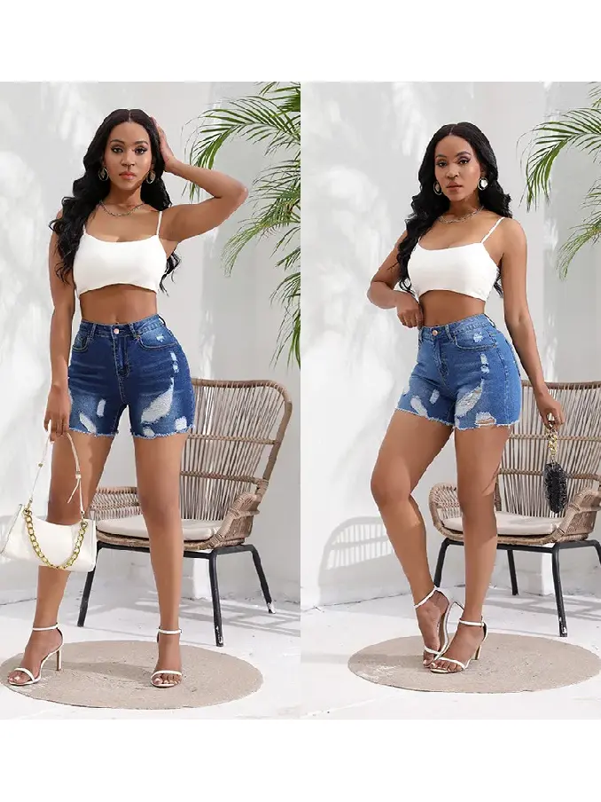 Embrace a blend of edgy style and comfort with our Women's Cut Off Ripped Distressed High Waisted Stretchy Denim Shorts, designed to elevate your casual wardrobe with a bold statement. Crafted from high-quality stretch denim, these shorts feature a high-waisted design that offers a flattering fit while providing flexibility and comfort. The cut-off style and distressed detailing add a rebellious edge, creating a trendy and urban-inspired look.