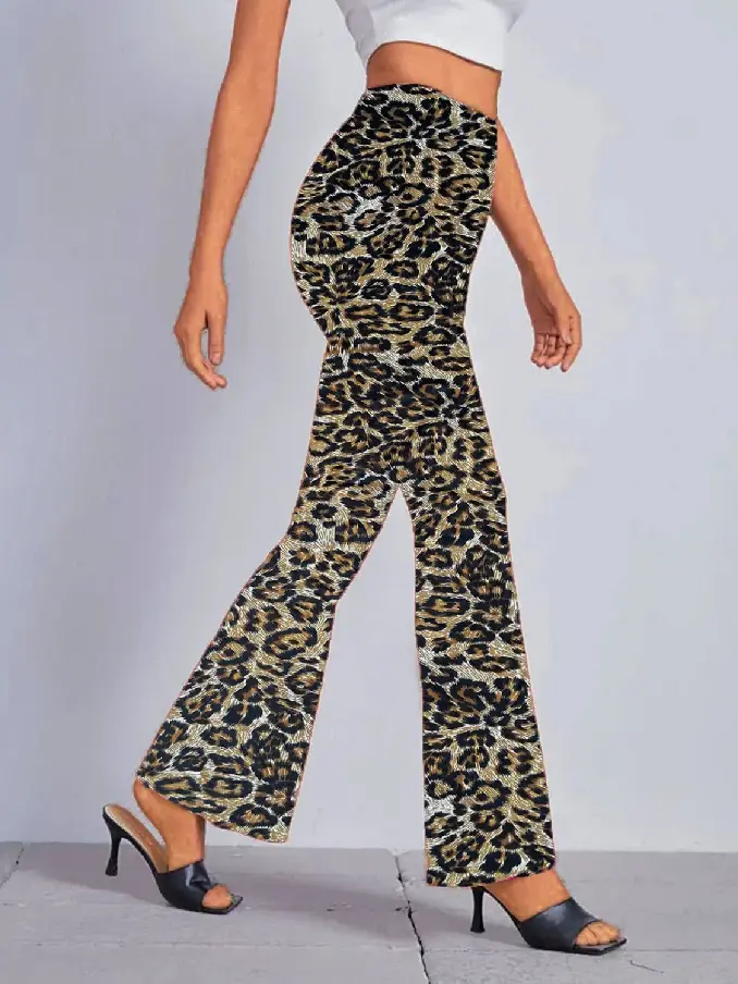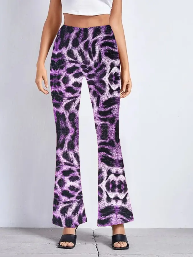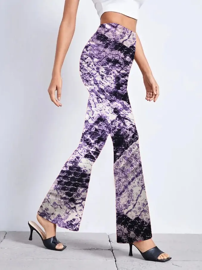 Printed Elastic Yoga Bell-bottom Pants Wide-leg Trousers for Outfits Sports