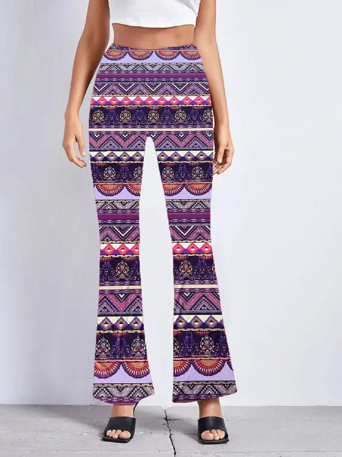 Elevate Your Yoga Sessions with Our Printed Elastic Yoga Bell-Bottom Pants Introducing our Printed Elastic Yoga Bell-Bottom Pants, where comfort meets style for your active lifestyle. Crafted from breathable fabric with a vibrant print, these trousers offer flexibility and flair, perfect for both workouts and casual wear.