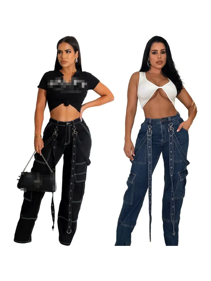 Step up your casual fashion game with our Ladies Cargo Suspenders Loose Casual Denim Trousers. Designed for ultimate comfort and effortless style, these trousers blend a relaxed fit with functional details, making them a must-have for your everyday wardrobe.