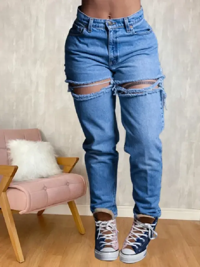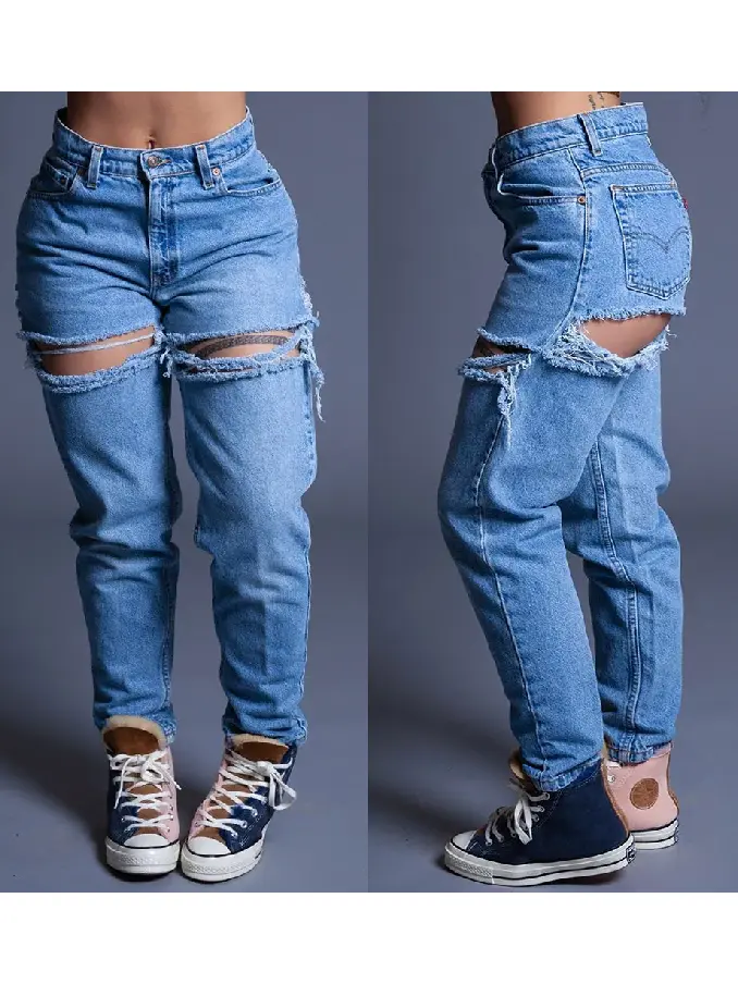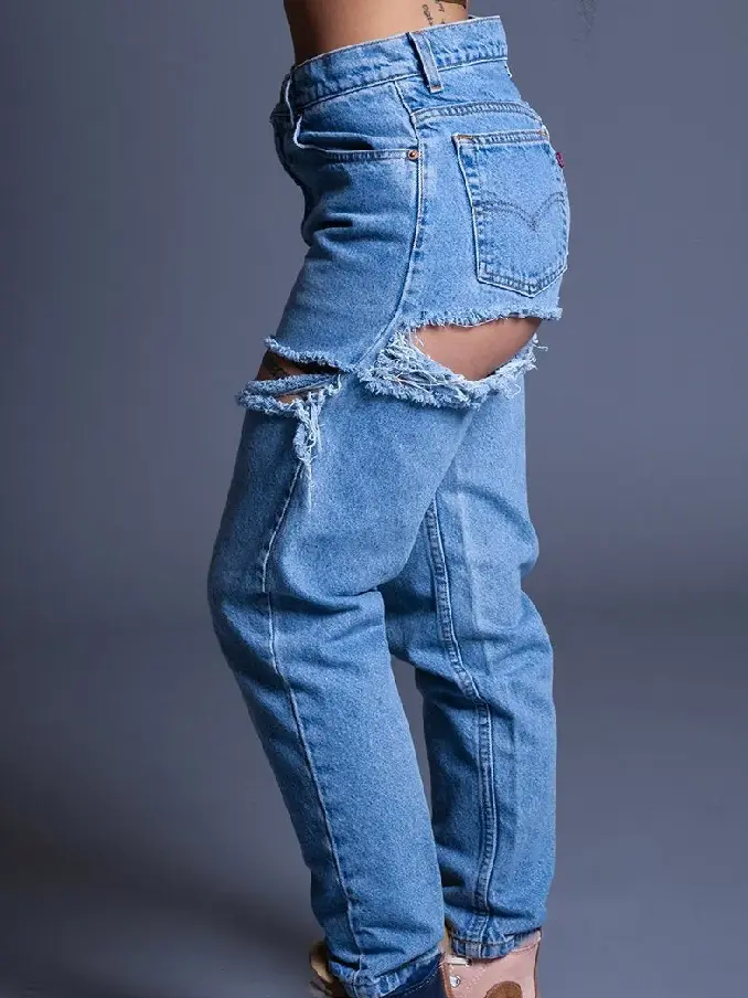 Step into laid-back elegance with our Loose High Waist Casual Pants featuring a wide leg and ripped details. Perfect for those who appreciate both comfort and a touch of rugged style, these jeans offer a modern twist on classic denim.