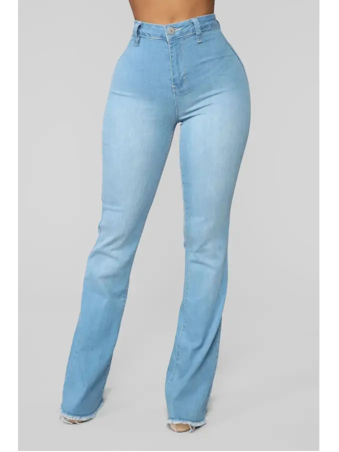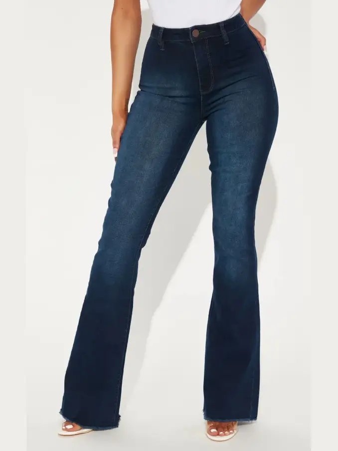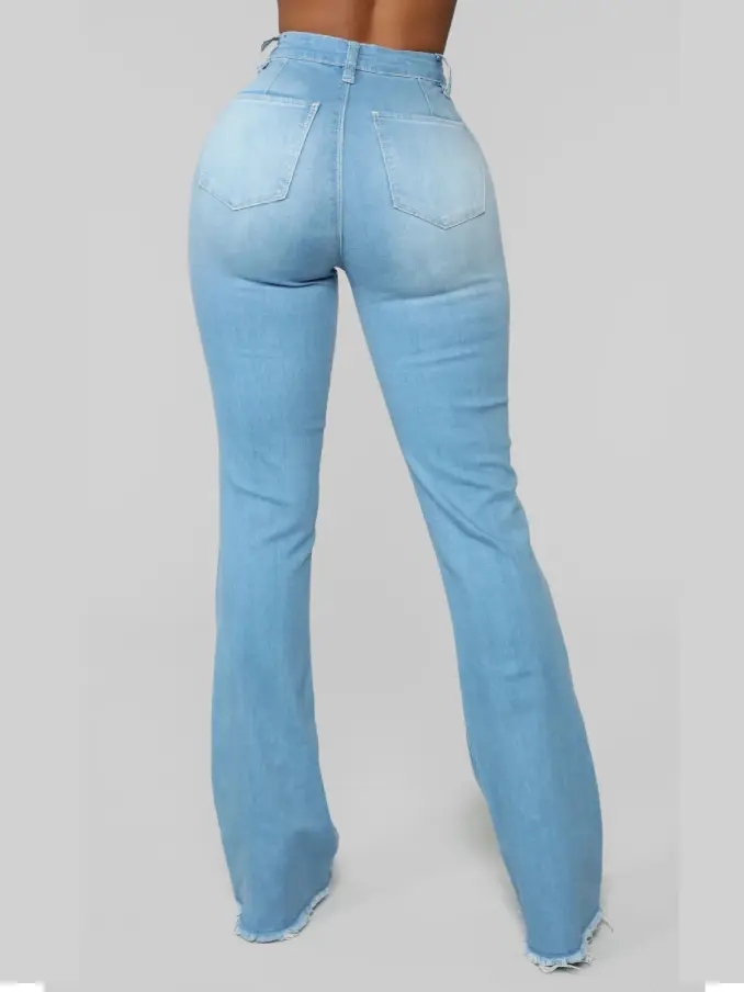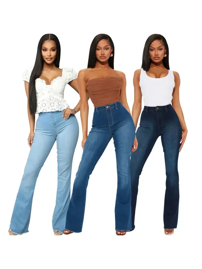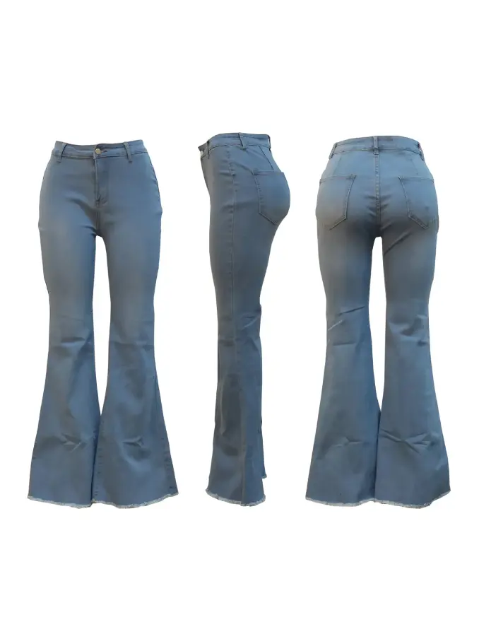 Transform your denim collection with our Women’s High Waist Stretch Denim Tassel Long Flare Pants. Merging classic denim with contemporary design, these pants offer a perfect blend of style, comfort, and trend-setting flair.