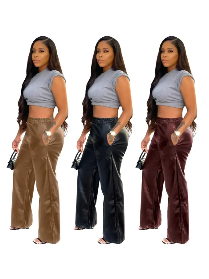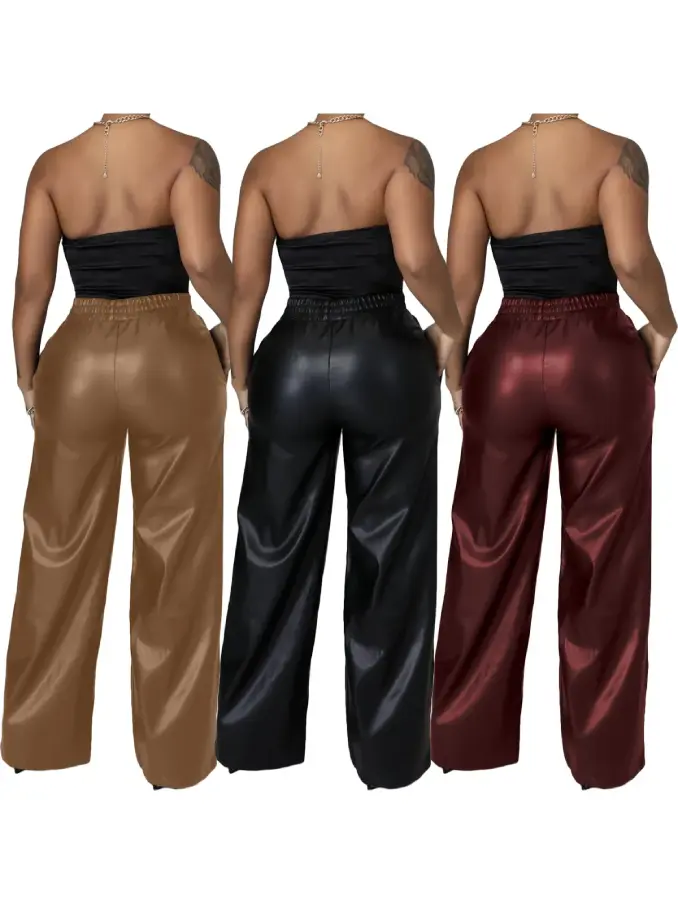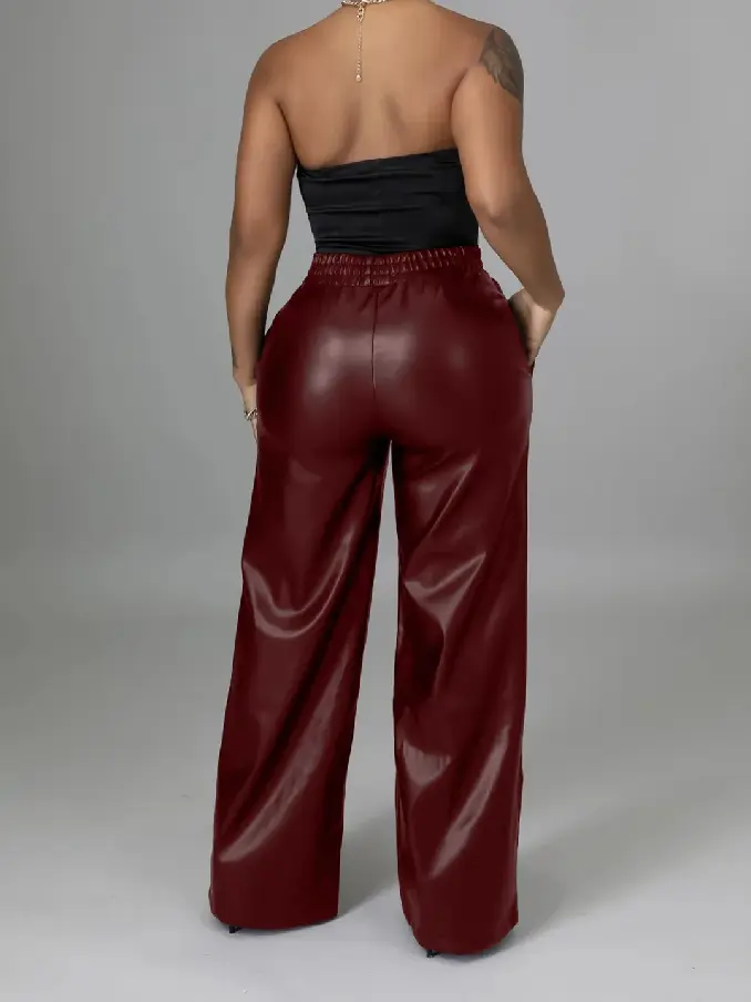 Step into sophistication and modern elegance with our Women’s Faux Leather Wide Leg Pants. These vintage-inspired high-waist palazzo pants are designed to make a bold fashion statement while offering unbeatable comfort and versatility.