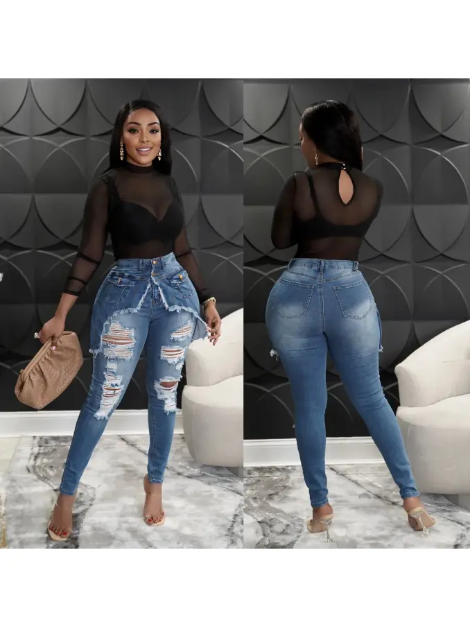 Discover the perfect blend of comfort and style with our Casual Denim High Waist Jeans for Women. Designed to offer a flattering fit and timeless appeal, these jeans are a wardrobe staple that effortlessly transitions from day to night.