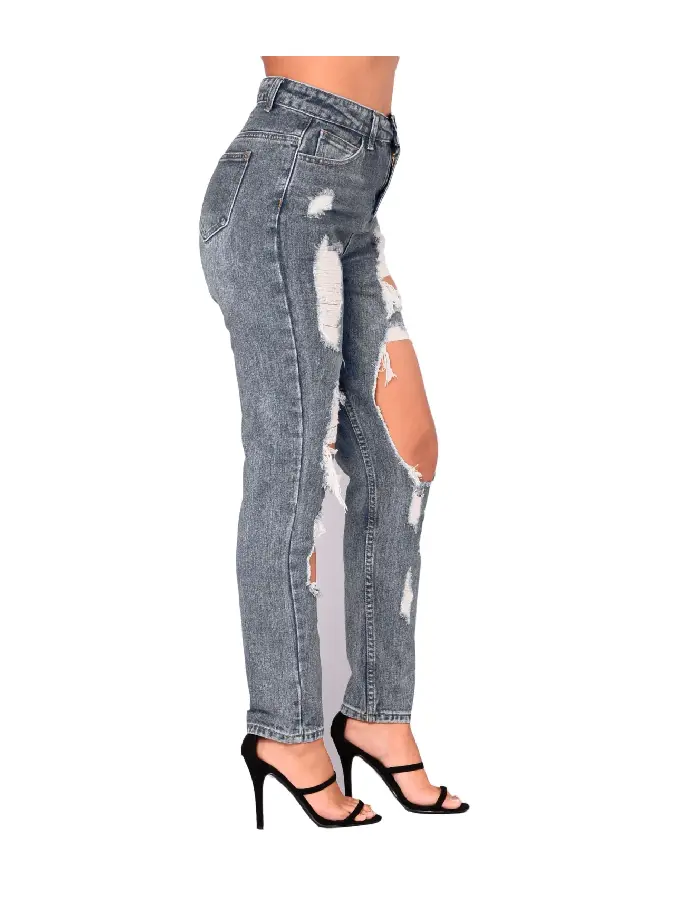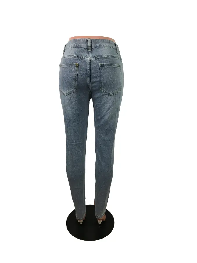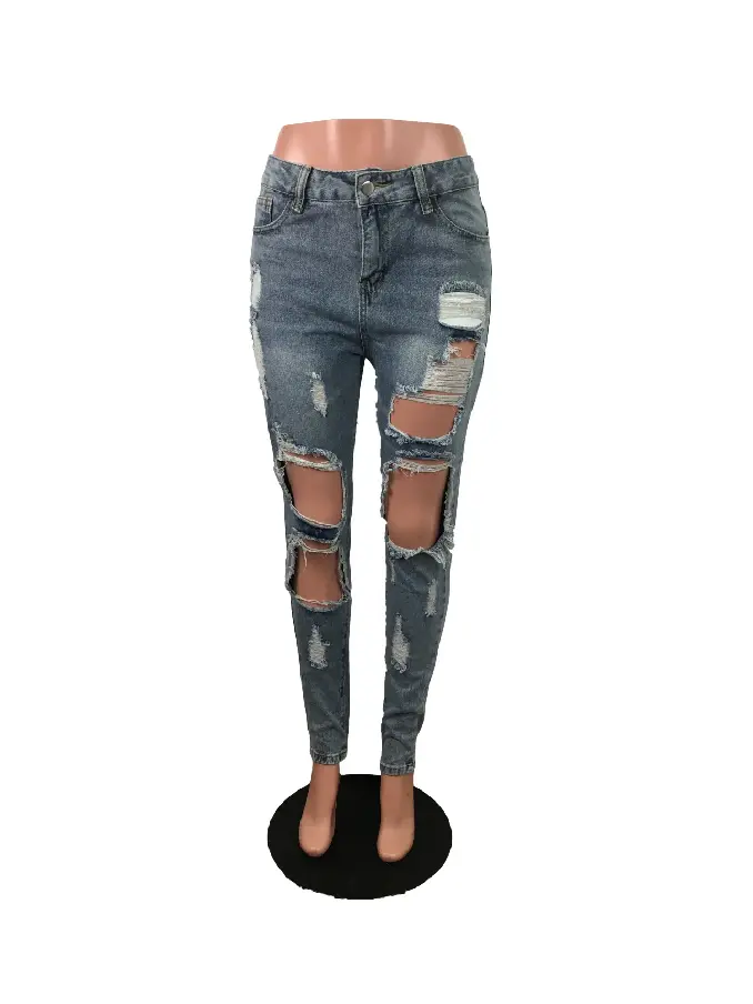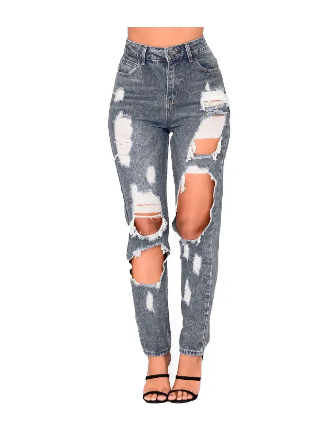 Embrace edgy chic with our Women's Hole Detail Jeans. These jeans are designed for fashion-forward individuals who love to make a statement. The distressed hole detailing adds a touch of rebellious charm, transforming classic denim into a standout piece.