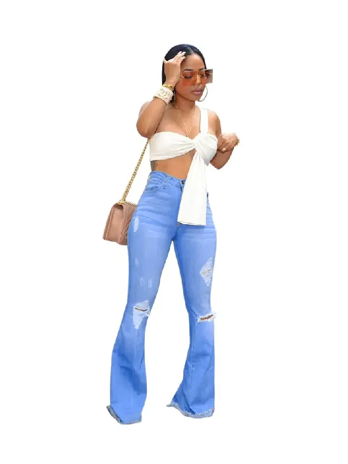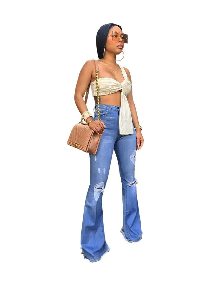 Step into effortless style with our Cotton Ruffled Wide Leg Jeans. Combining the timeless appeal of wide-leg denim with playful ruffle details, these jeans are designed to bring a fresh and feminine touch to your casual wardrobe.