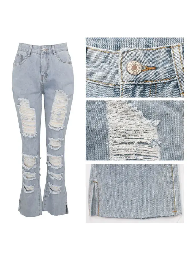 Upgrade your casual wardrobe with our Casual Hole Non-Stretch Denim Trousers—a blend of relaxed style and rugged charm. Perfect for those who appreciate classic denim with a touch of modern edge, these trousers are designed to provide both comfort and standout appeal.