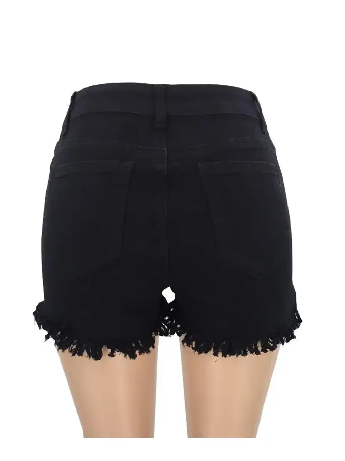 Black Short Jeans With Ruffle Trims