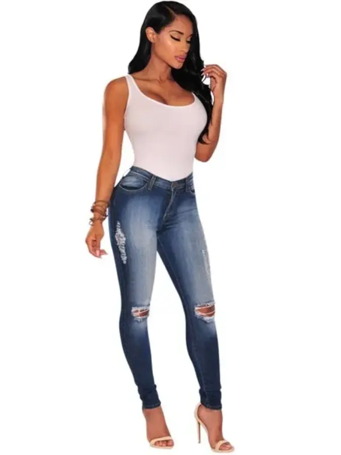 Transform your denim collection with the Denim Ripped Knee Skinny Jeans L555. Designed for fashion-forward individuals, these jeans blend edgy ripped details with a sleek, skinny fit, making them a must-have for any trendsetter.
