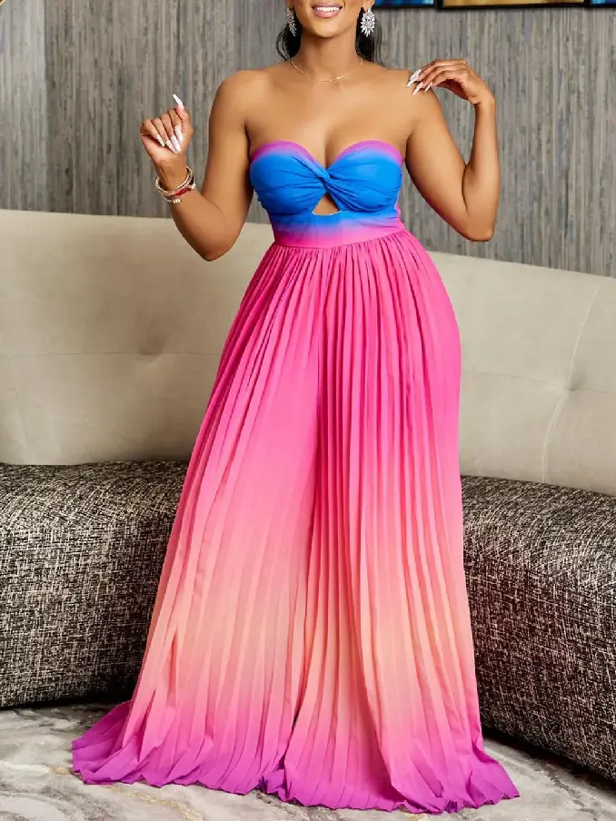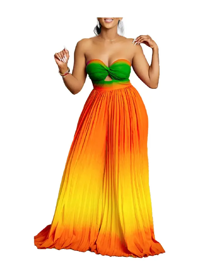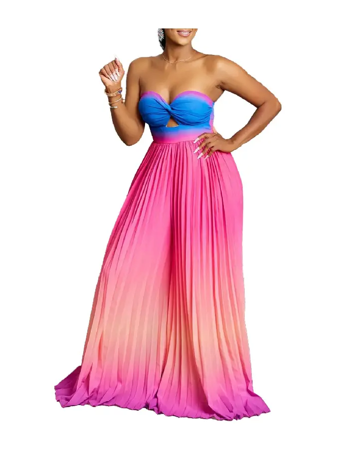 Step into a realm of sophisticated glamour with our Tube Top Backless Gradient Color Wide Leg Strapless Jumpsuit. Designed for those who adore making a chic statement, this jumpsuit is the epitome of modern style and confidence.