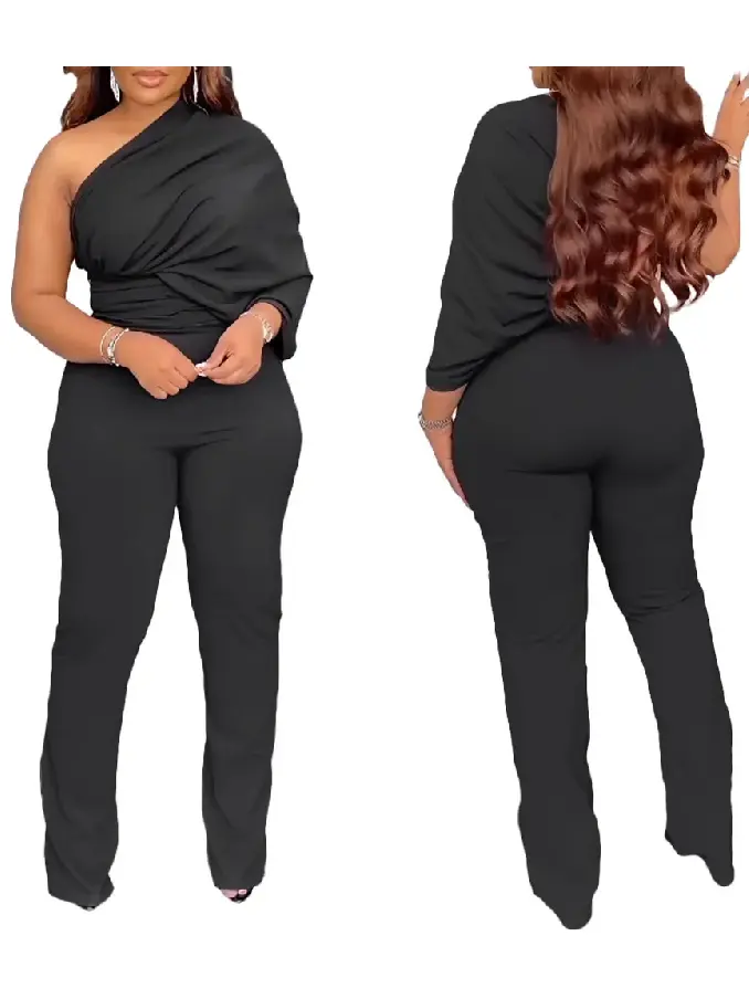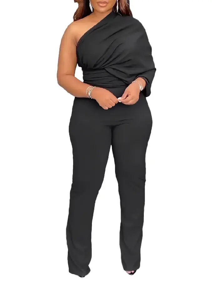 Turn heads and exude confidence with our Stylish Irregular One Shoulder Ruched Jumpsuit. This fashion-forward piece effortlessly combines contemporary design with elegant detailing, offering a look that’s both unique and sophisticated