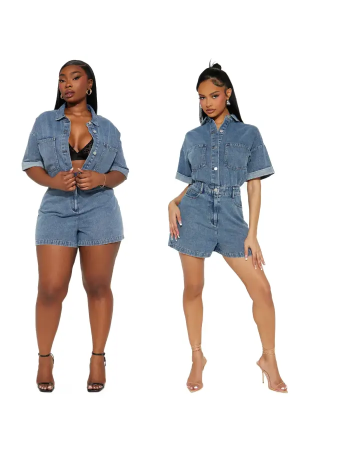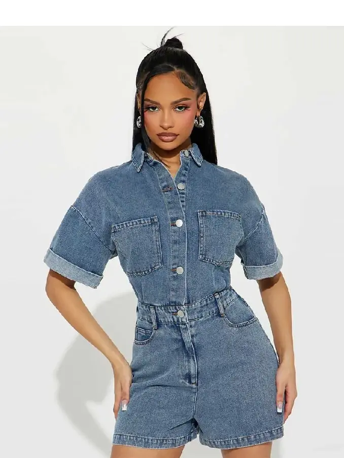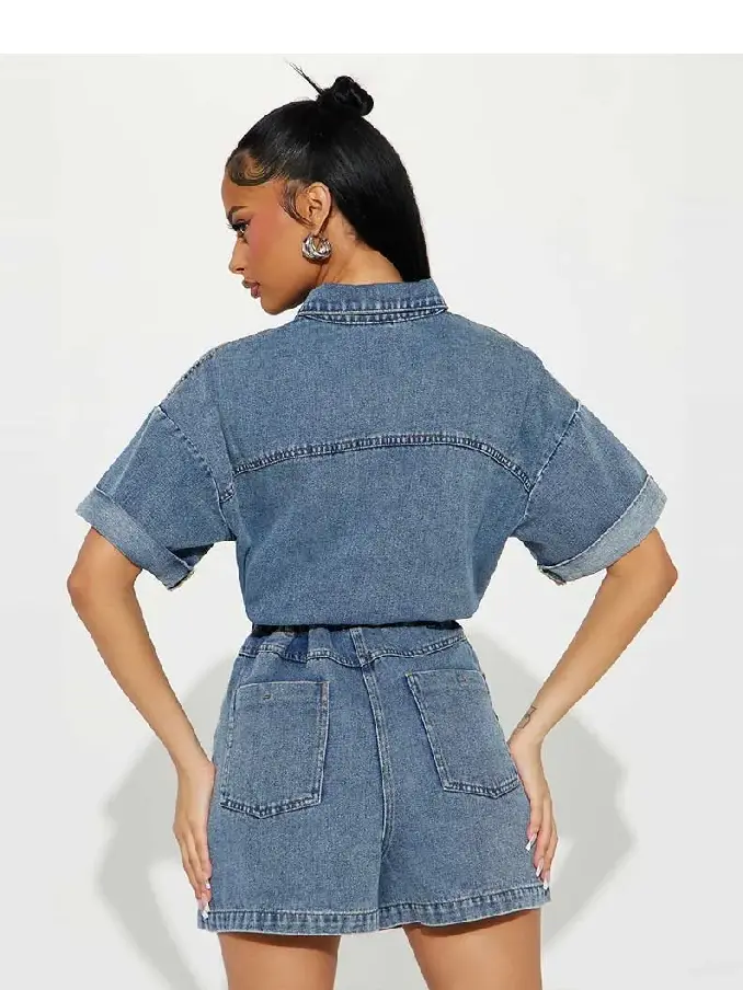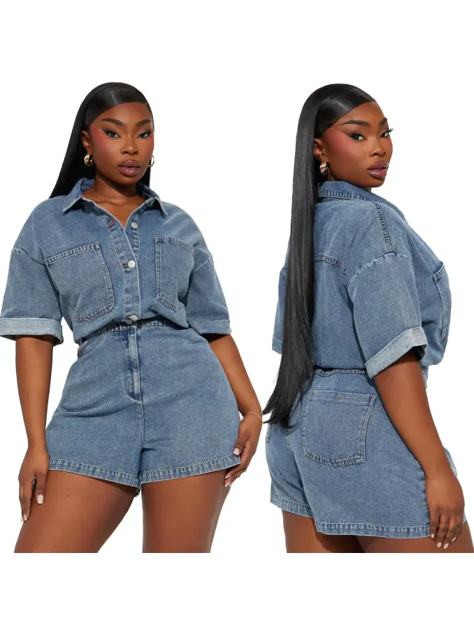 Embrace relaxed, contemporary style with our High Elastic Short Sleeve Loose Washed Denim Romper. Perfectly combining comfort and casual chic, this romper is your go-to choice for laid-back days and easygoing outings.