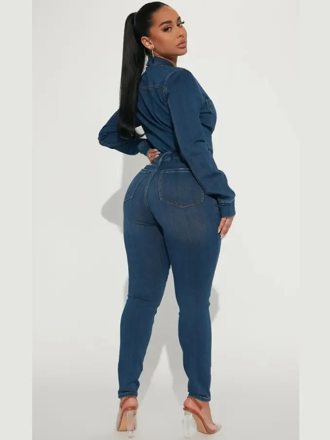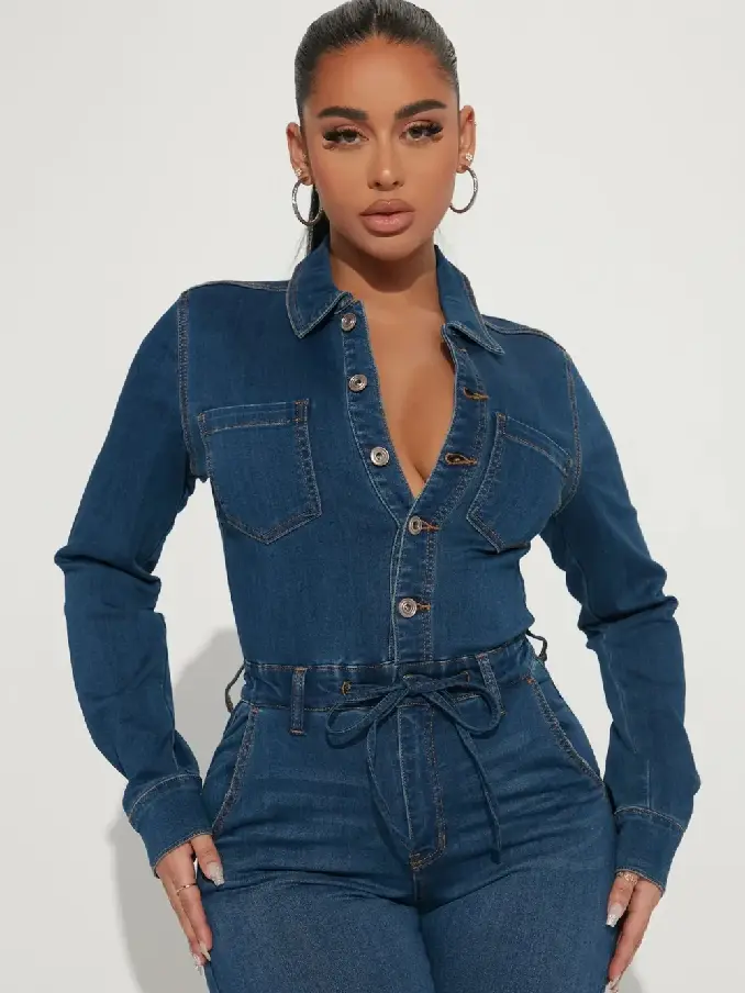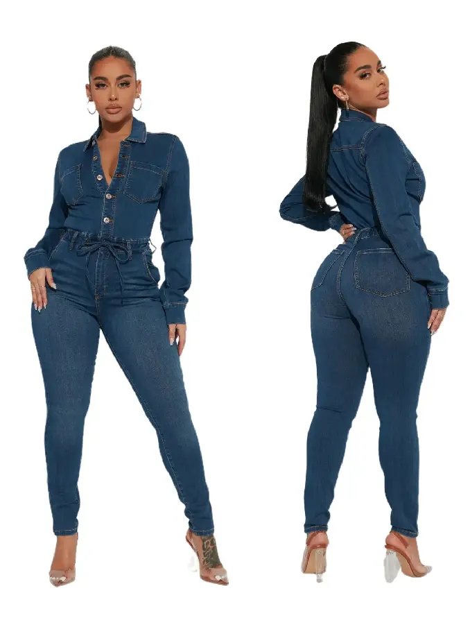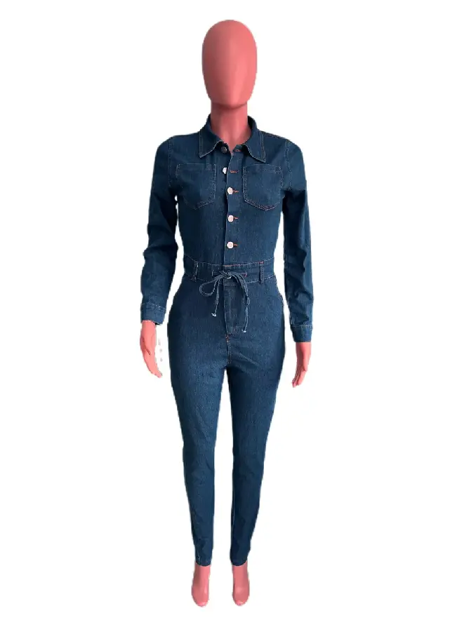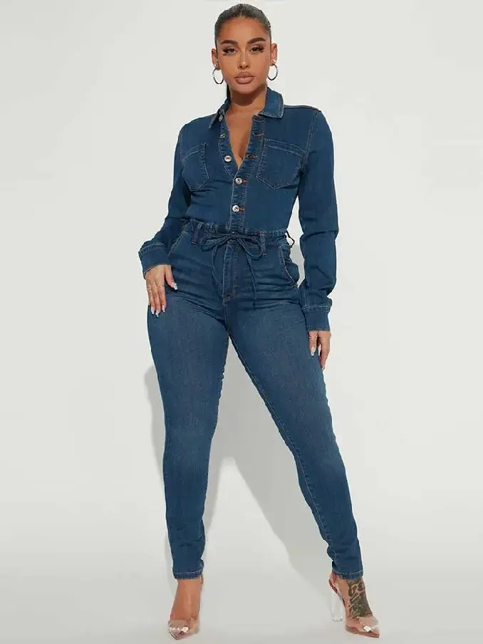 Discover the perfect blend of classic charm and contemporary style with our Long Sleeve Denim Jumpsuit for Women 2023. Featuring a single-breasted design and a turn-down collar, this versatile overall is an essential addition to any modern wardrobe.