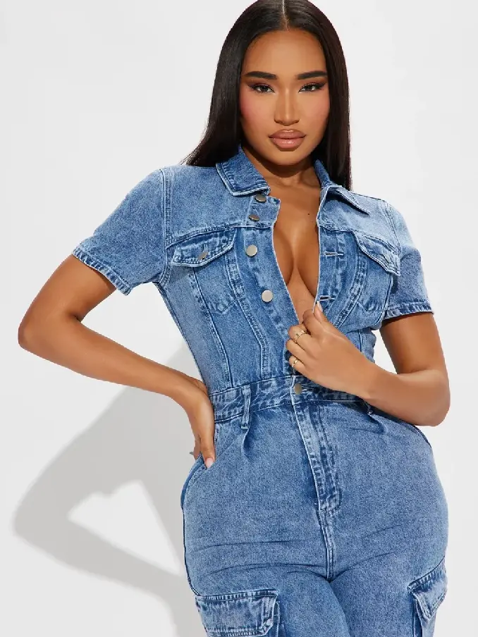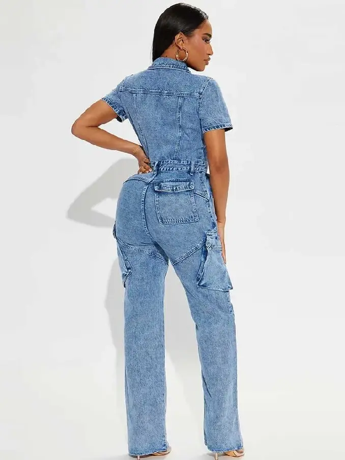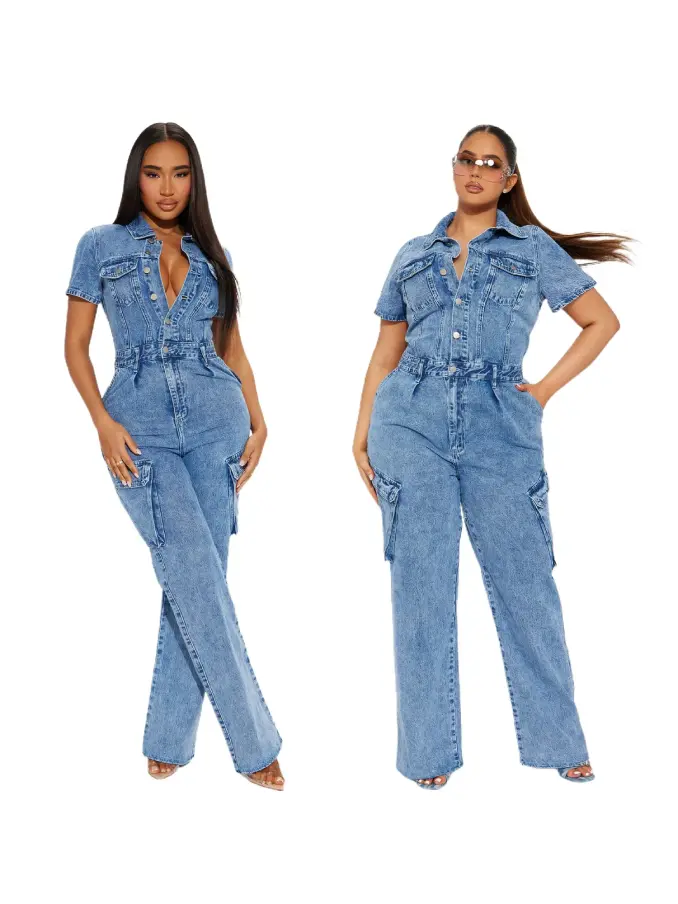 Discover laid-back sophistication with our Casual Flared Pants Slim Elastic Washed Denim Jumpsuit. Perfect for everyday wear, this jumpsuit combines modern design with classic denim charm to create a versatile and stylish piece for any casual occasion.