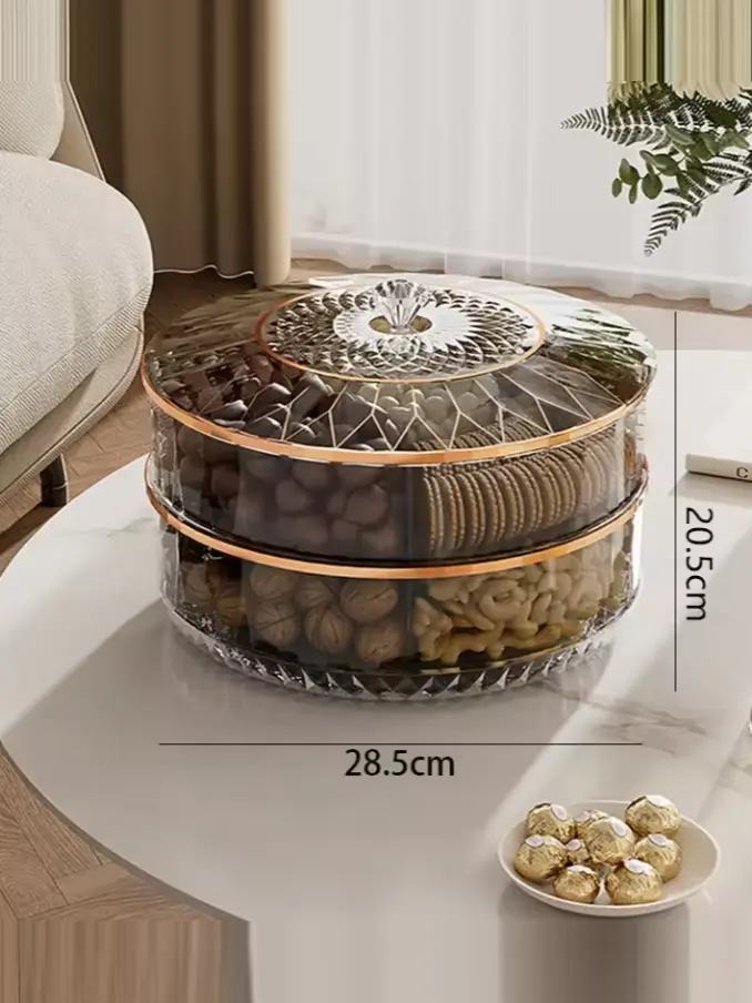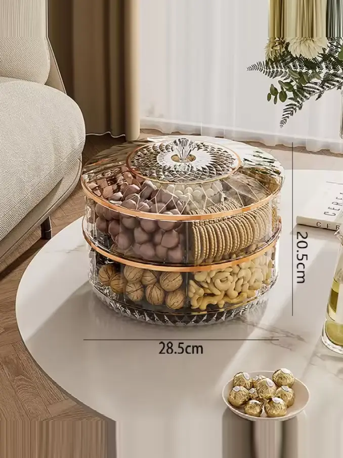 Organize and access your snacks with ease using the Rotatable Transparent Desktop Multilayer Plastic Storage Box. Perfect for fruits, nuts, and other treats, this customizable storage solution features a unique rotatable design, making it easy to reach your favorite snacks. Its transparent layers allow you to see contents at a glance, while the durable plastic construction ensures long-lasting use. Ideal for home or office, this stylish storage box keeps your space tidy and your snacks accessible. Enhance your food storage experience with this versatile and convenient organizer.