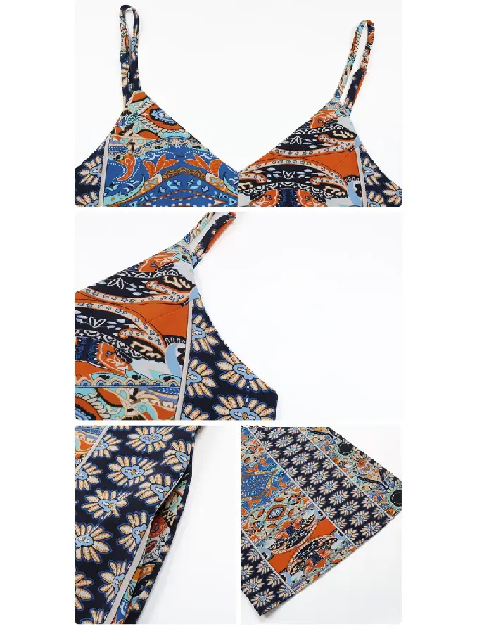 Immerse yourself in a fusion of style and culture with our Backless Print Strap Wide Leg Ethnic Jumpsuit. This eye-catching piece combines vibrant ethnic prints with a modern silhouette, creating a chic and comfortable outfit perfect for any fashion-forward occasion.