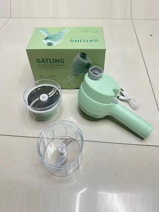Simplify your meal prep with the Multi-Functional Wireless Electric Garlic Beater and Vegetable Cutter. This handheld Gatlin cooking machine is perfect for quickly chopping garlic, onions, chili, and other vegetables with ease. Its innovative design and powerful motor make it an essential kitchen tool for any home cook. Made from durable new plastic, it is lightweight and easy to clean. The wireless feature adds convenience, allowing you to use it anywhere in the kitchen. Make cooking faster and more enjoyable with this versatile and efficient gadget.