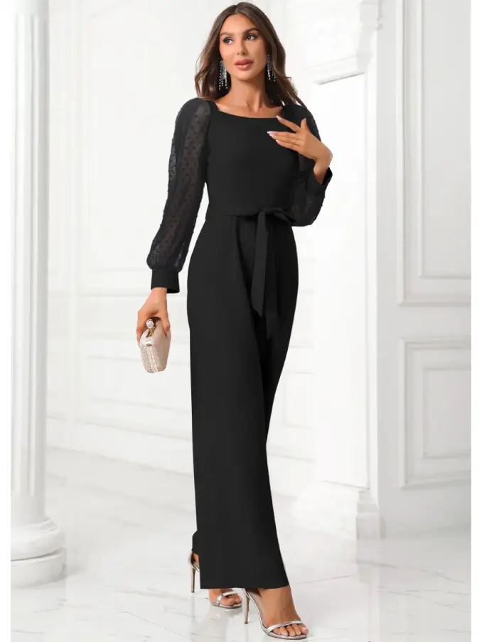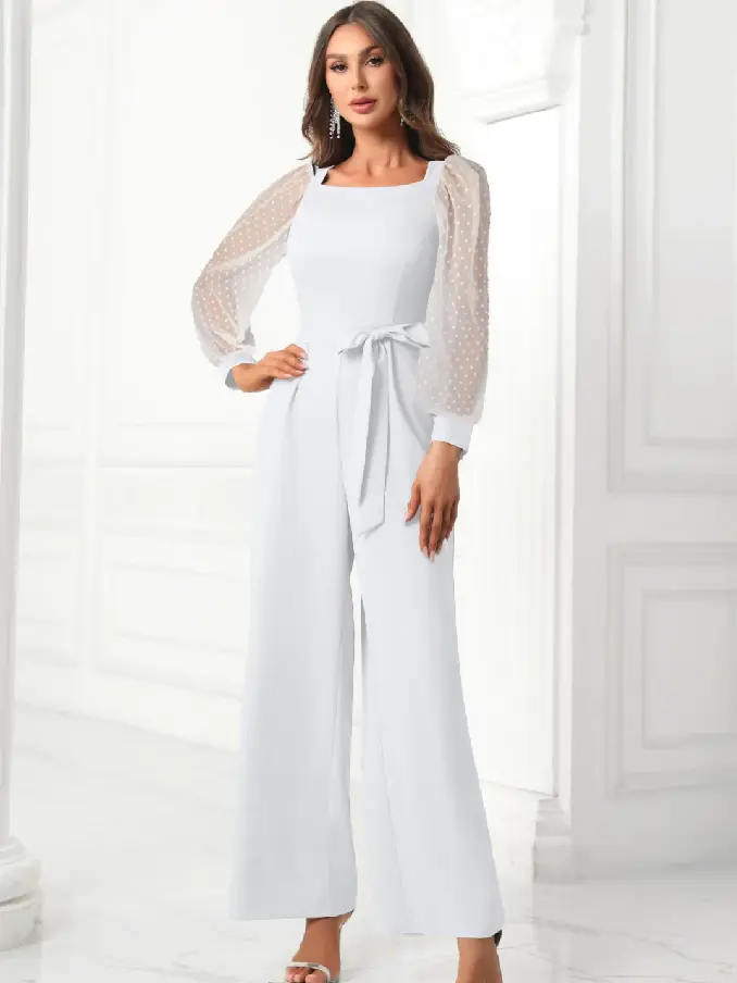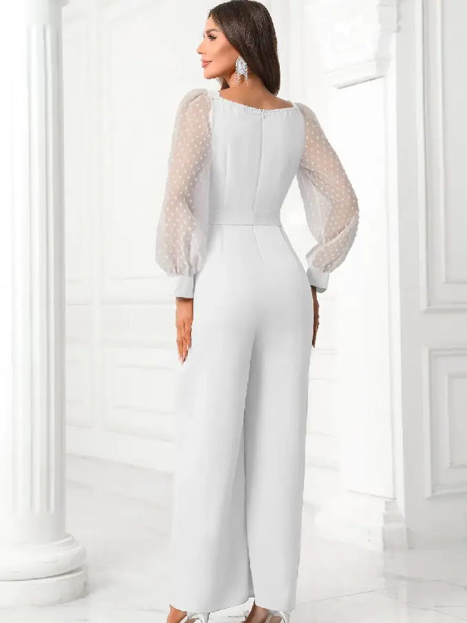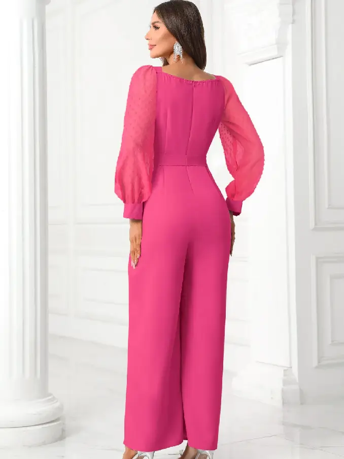 Step into sophistication with our Jacquard Puff Sleeve Square Neck Zip Back Jumpsuit. This stunning one-piece combines luxurious fabric, classic design elements, and modern tailoring to create a standout look for any occasion.