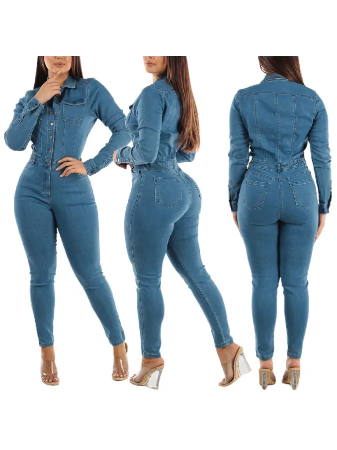 Discover the perfect blend of vintage charm and contemporary style with our Women’s Juniors Denim Long Sleeve Button-Up Jumpsuit. Crafted from washed denim, this jumper is designed to offer a comfortable fit with timeless appeal, making it a versatile addition to your wardrobe.