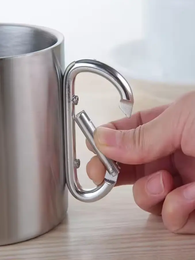 Elevate your outdoor experience with our Stainless Steel Coffee Tea Cup, designed for adventures. Featuring a durable 300ML capacity and a convenient mountaineering buckle, this cup is perfect for climbing, hiking, picnicking, and camping. Its robust stainless steel construction ensures longevity and keeps your drinks at the ideal temperature. Stay refreshed and organized on your outdoor journeys with this practical and versatile cup