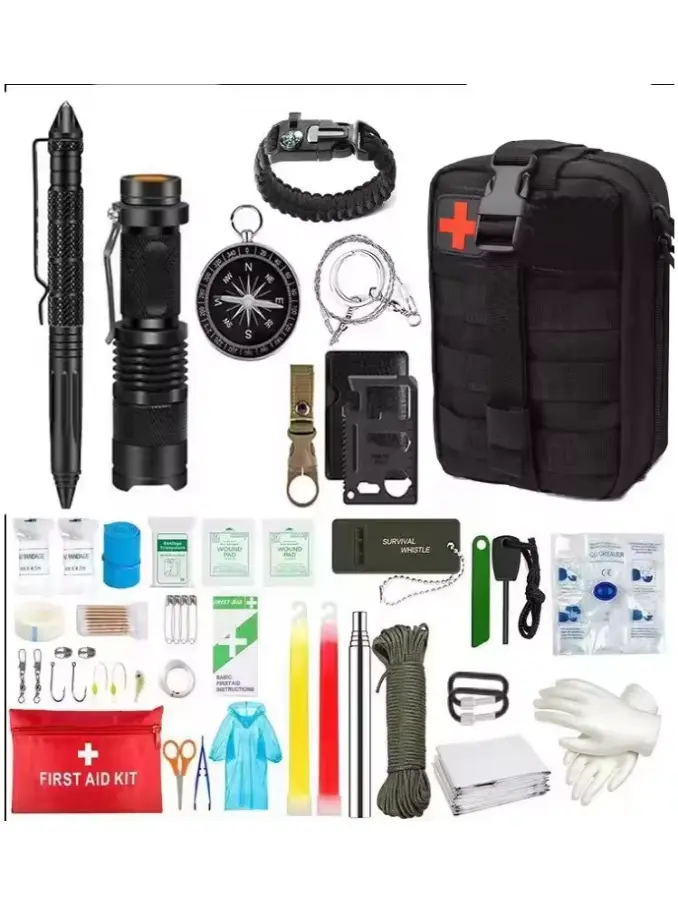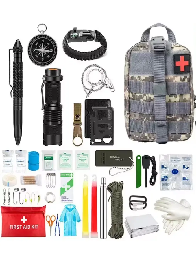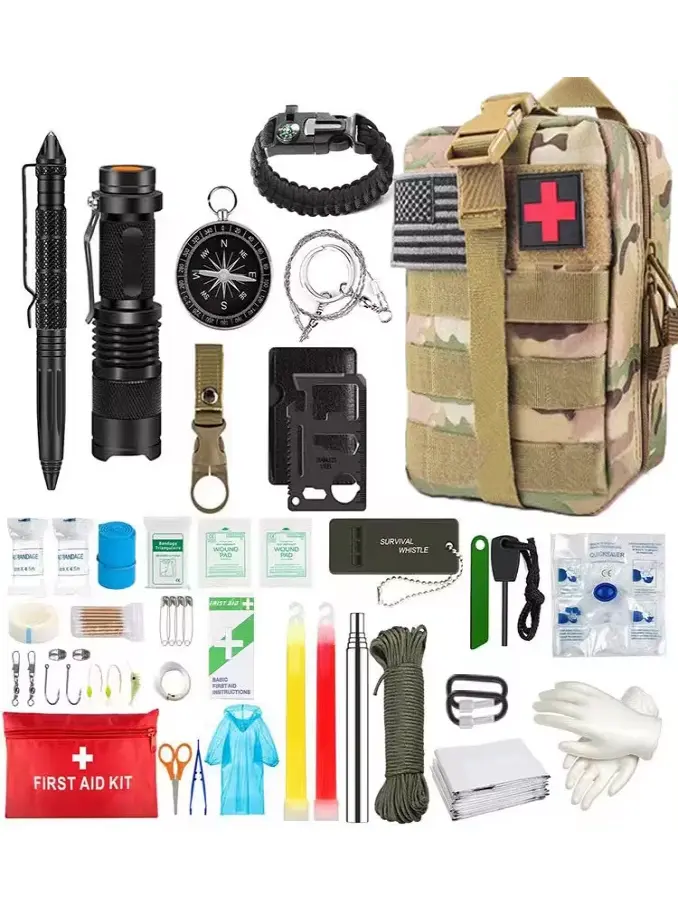 Stay prepared for any situation with our Waterproof Portable Outdoor Survival Kit. This tactical first aid kit is designed for emergencies, including disasters and earthquakes, featuring durable waterproof bags to keep essentials secure and dry. Equipped with Molle-compatible cards for easy attachment to your gear, it’s perfect for outdoor adventures and survival scenarios. Ensure you're ready for the unexpected with this comprehensive and reliable emergency kit