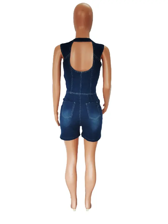 Fashion Slim Denim Sleeveless One Piece Rompers