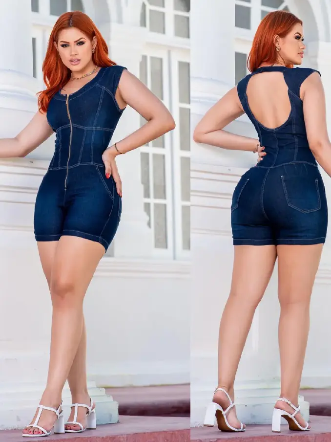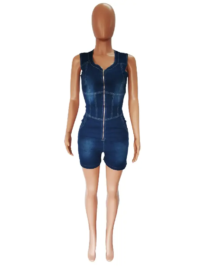Step out in style with the Fashion Slim Denim Sleeveless One Piece Romper—a sleek and modern take on classic denim. This one-piece romper combines a flattering slim fit with contemporary design, making it a must-have for those who love both comfort and fashion.
