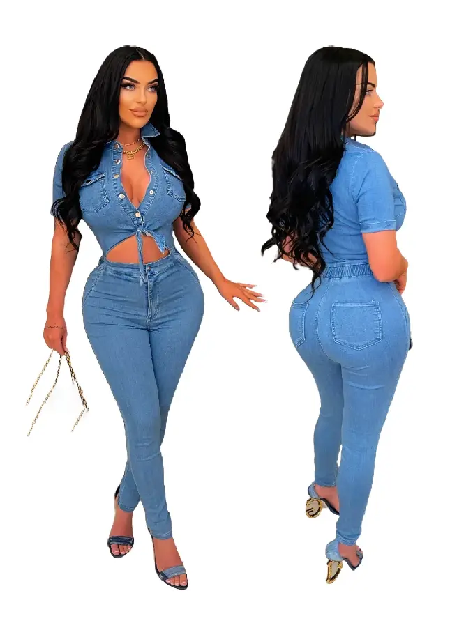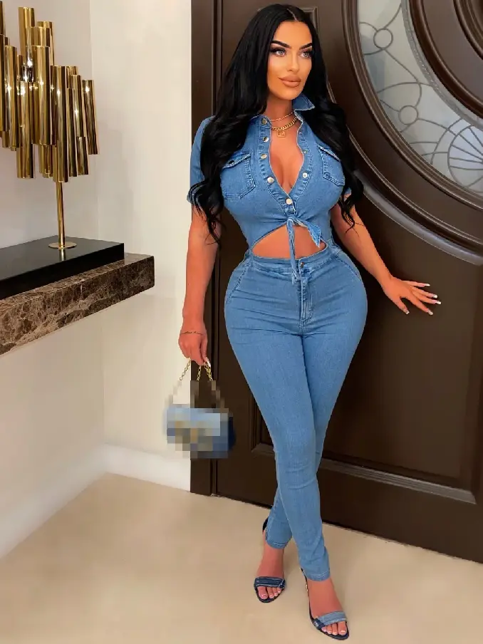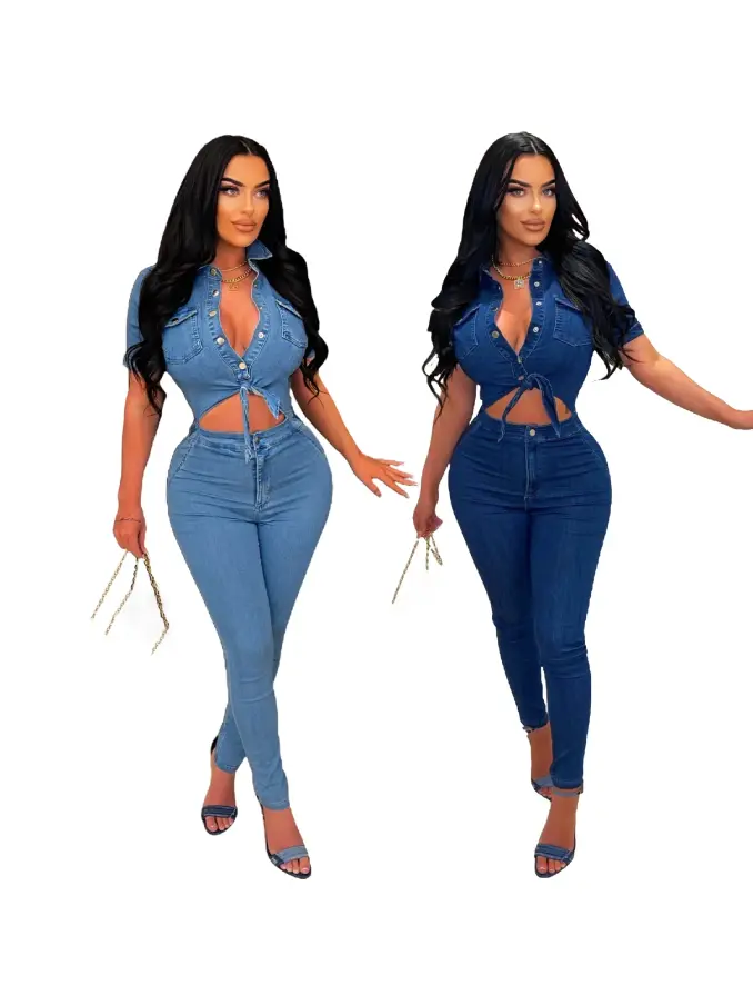 Elevate your casual wardrobe with the Turndown Neck Short Sleeve Hollow Out Denim Jumpsuit—a perfect blend of classic denim and modern design elements. This jumpsuit combines comfort and style, making it an essential piece for effortless everyday fashion.