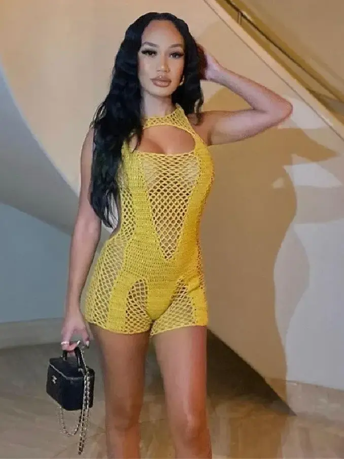 Low Neck tight Knit High Waisted Casual jumpsuit Shorts